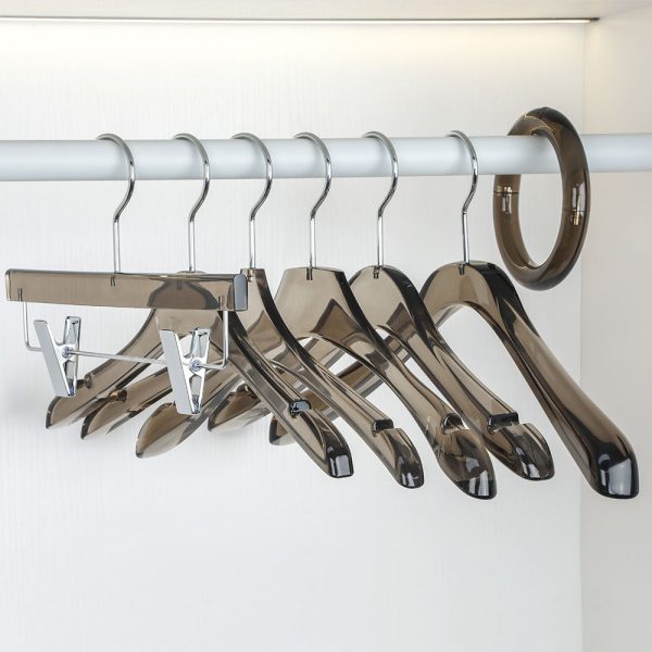 - Clear: Acrylic hangers are completely clear, which makes them ideal for showcasing clothing without distracting from the garment. They provide a clean and minimalist look to any wardrobe.